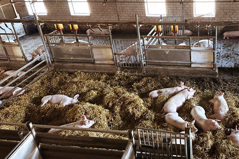 Unsere Schweine toben im Stroh und haben doppelt soviel Platz. Nur eigenes Futter ohne Gentechnik.